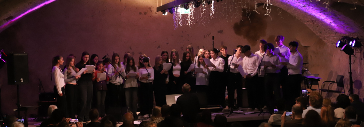 Der Gesang des Rock-Pop-Chors unter Leitung von Jörg Hankele ging nochmals richtig ans Herz, als die große Gruppe aus Mittel- und OberstufenschülerInnen Stücke von Adele, Furler und Mars performte.