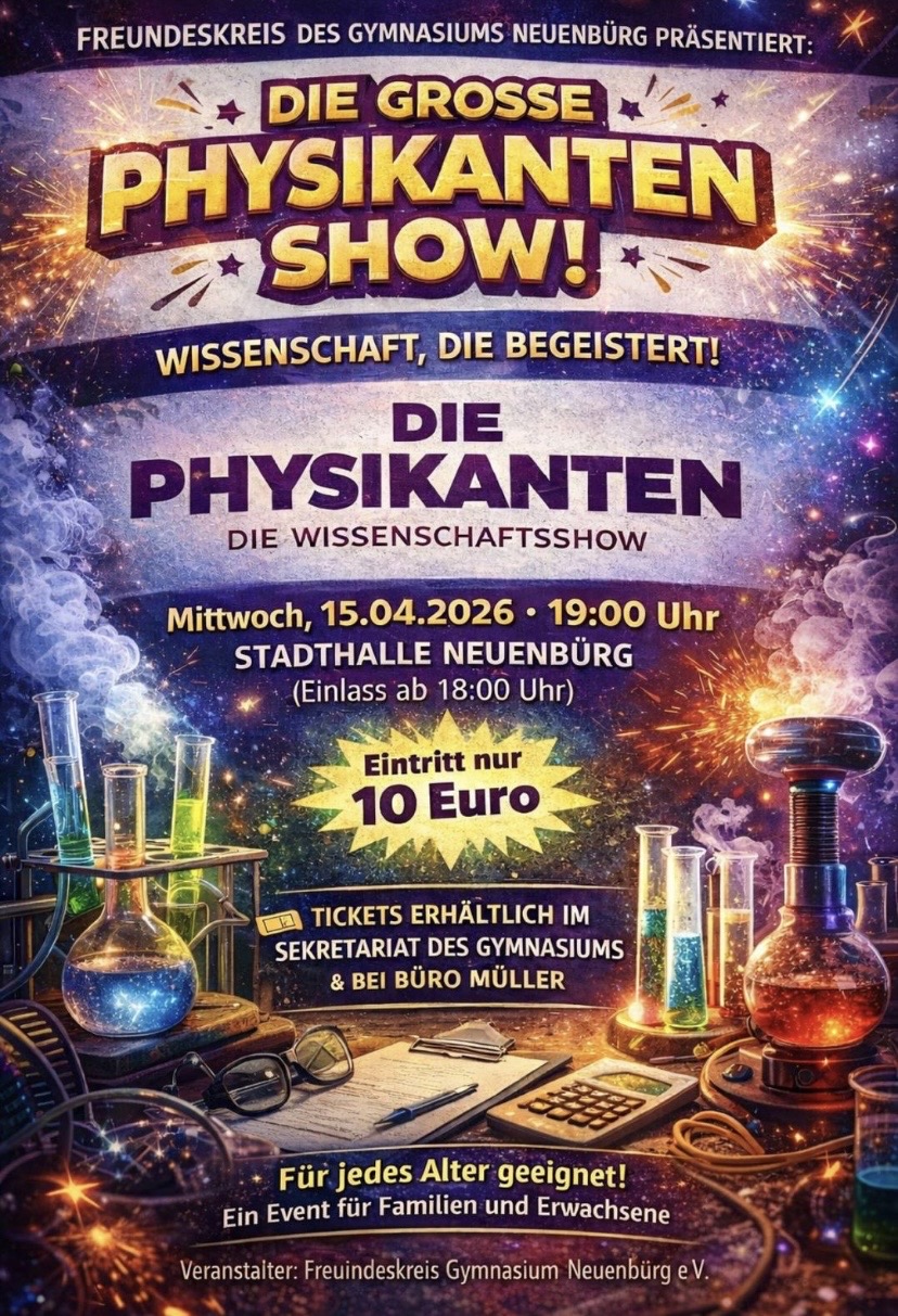 Wir freuen uns sehr darüber, die PHYSIKANTEN am Mittwoch, 15. April 2026 in der Stadthalle Neuenbürg begrüßen zu dürfen!