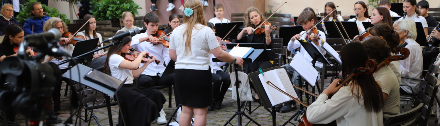 Am 26. Und 27. Mai bebte Schloss Neuenbürg, denn viele MusikerInnen begeisterten mehr als 600 BesucherInnen mit einem vielfältigen musikalischen Programm, das mit großem Engagement auf die Beine gestellt wurde. Die feierliche Eröffnung von Bürgermeister Fabian Bader untermalten die Bläserklassen des Gymnasiums und der Grundschule sowie festliche Trompetenfanfaren. Anschließend spielte das Kooperationsorchester von Gymnasium, Jugendmusikschule und Musikverein unter Leitung von Dorothea Merkel und Michael Pietsch-Rether. Mit einem großen und vielfältigen Programm von Klassik bis Moderne erfüllte es den Schlosshof mit festlichen Klängen und steckte das Publikum mit seiner Spielfreude an.