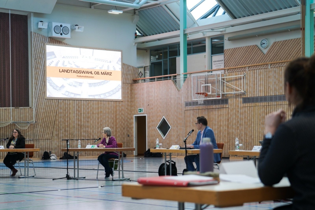 Im Anschluss erhielten die Schülerinnen und Schüler selbst die Gelegenheit, Fragen an die Kandidierenden zur Landtagswahl zu richten. Dabei spielten unter anderem Klimaschutz, Geschlechtergerechtigkeit sowie weitere gesellschaftspolitische Themen eine zentrale Rolle. Die Diskussion verlief insgesamt kontrovers, wobei die unterschiedlichen Parteipositionen klar erkennbar wurden.